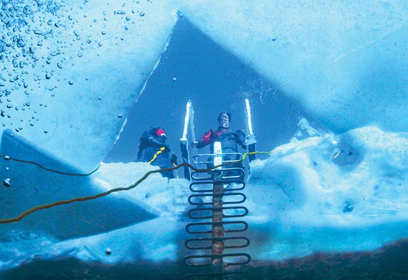 After that we realized finishing the video was possible. It was gonna be hard work, but the project would work. We were there for a week, doing anywhere from six to eight dives a day to get the 24 shots we needed. In between each dive, I would do like 20 sit-ups and push-ups in an Everest suit and drink a mug of Turmeric tea to warm up.