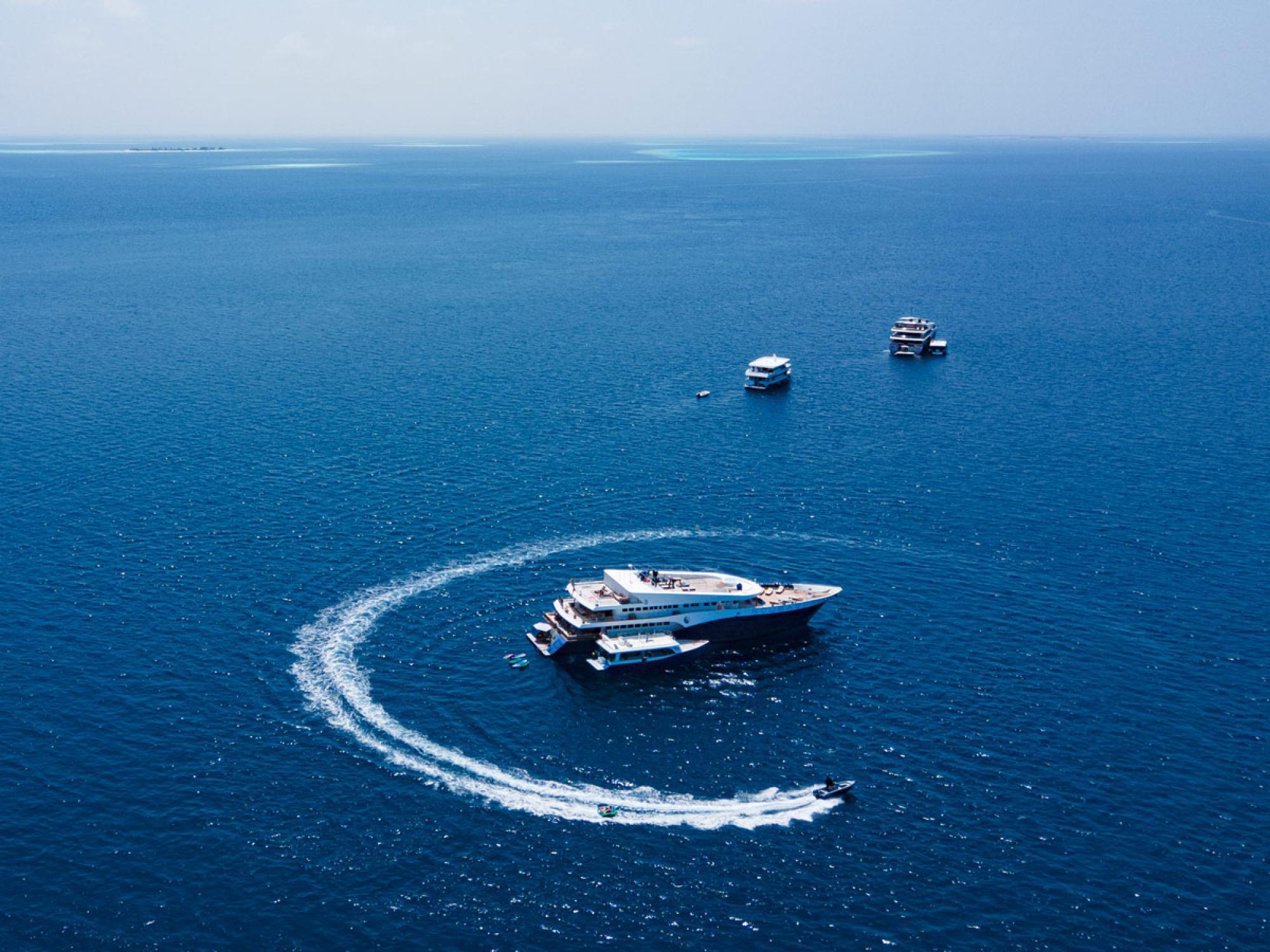 Part hardcore diver nirvana, part spa aficionado hangout, this luxury liveaboard offers culinary delicacies served under the stars on the top deck, cocktails made from fresh local fruit hustled still frozen to the jacuzzi or sun loungers, beach picnics with fluffy beanbag seating, live music by bonfirelight, pickup cricket and football matches with the crew—the sum of its many, many parts equals one fabulous, well-rounded vacation. And where better to experience this type of dive travel than in one of the most idyllic dive destinations in the world: the Maldives.