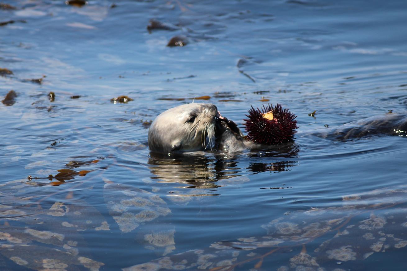 Sea otters eat sea urchins—you may have seen them doing this, looking adorable as they float on their backs holding a rock to smash open their shellfish dinner. But when we lose sea otters, sea urchin populations grow out of control, and they overgraze the kelp forest, replacing it with something called an “urchin barren.”