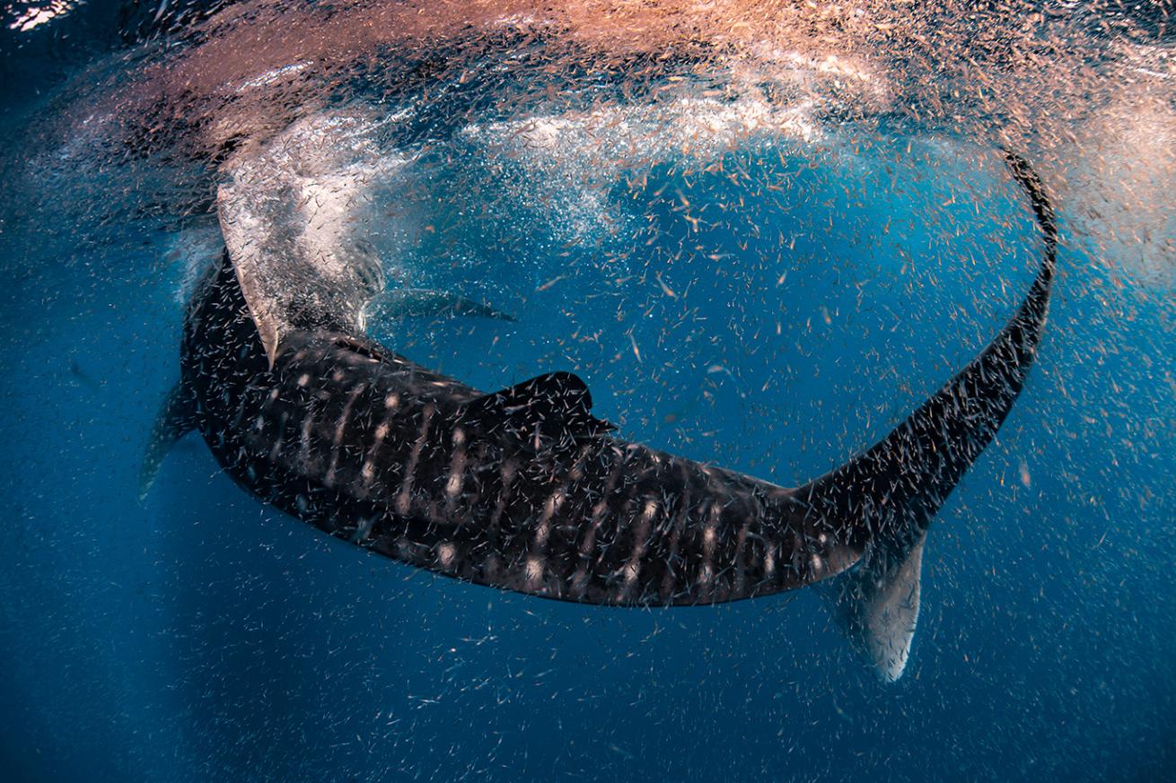 Courtesy, Brooke PykeWhale shark in a cloud of krill.