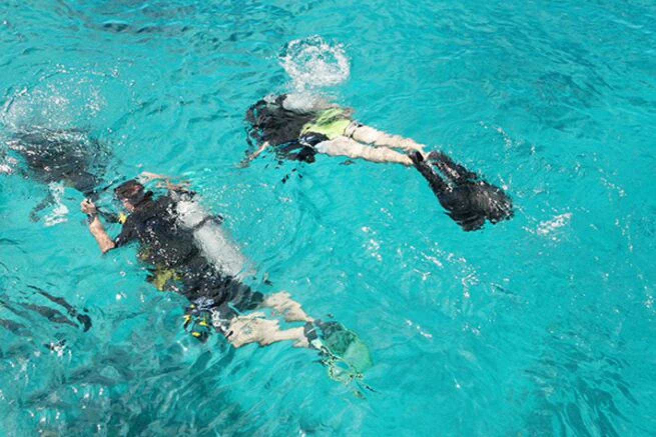 Once you're comfortable, your instructor will have you swim on the surface while breathing through the reg. Click here to find out what gear you'll need to begin training.