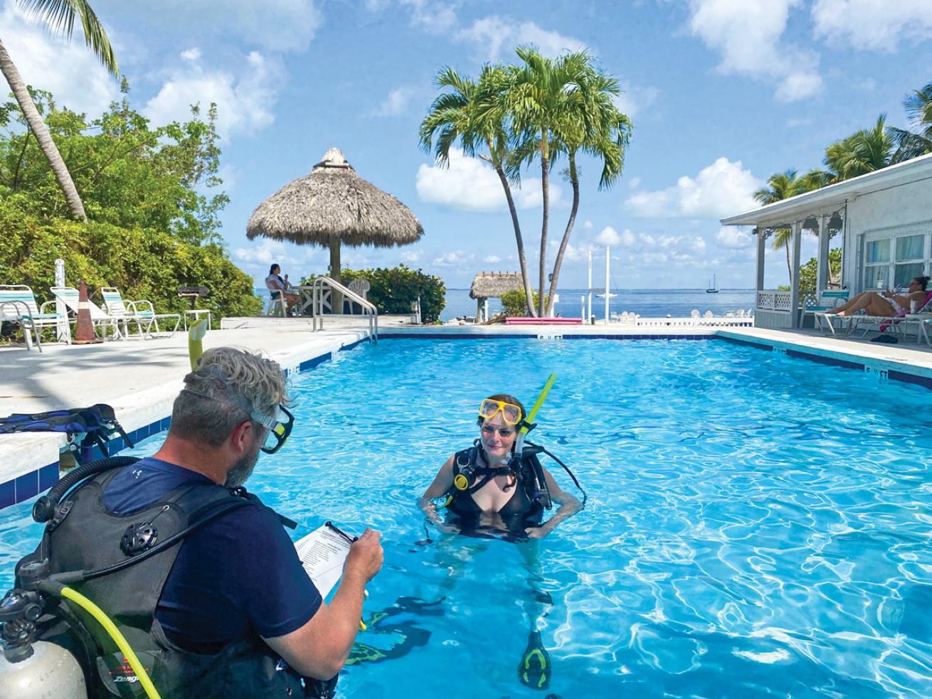 Jennifer PennerA pool instructor evaluates a student’s skills at Amoray Dive Resort.