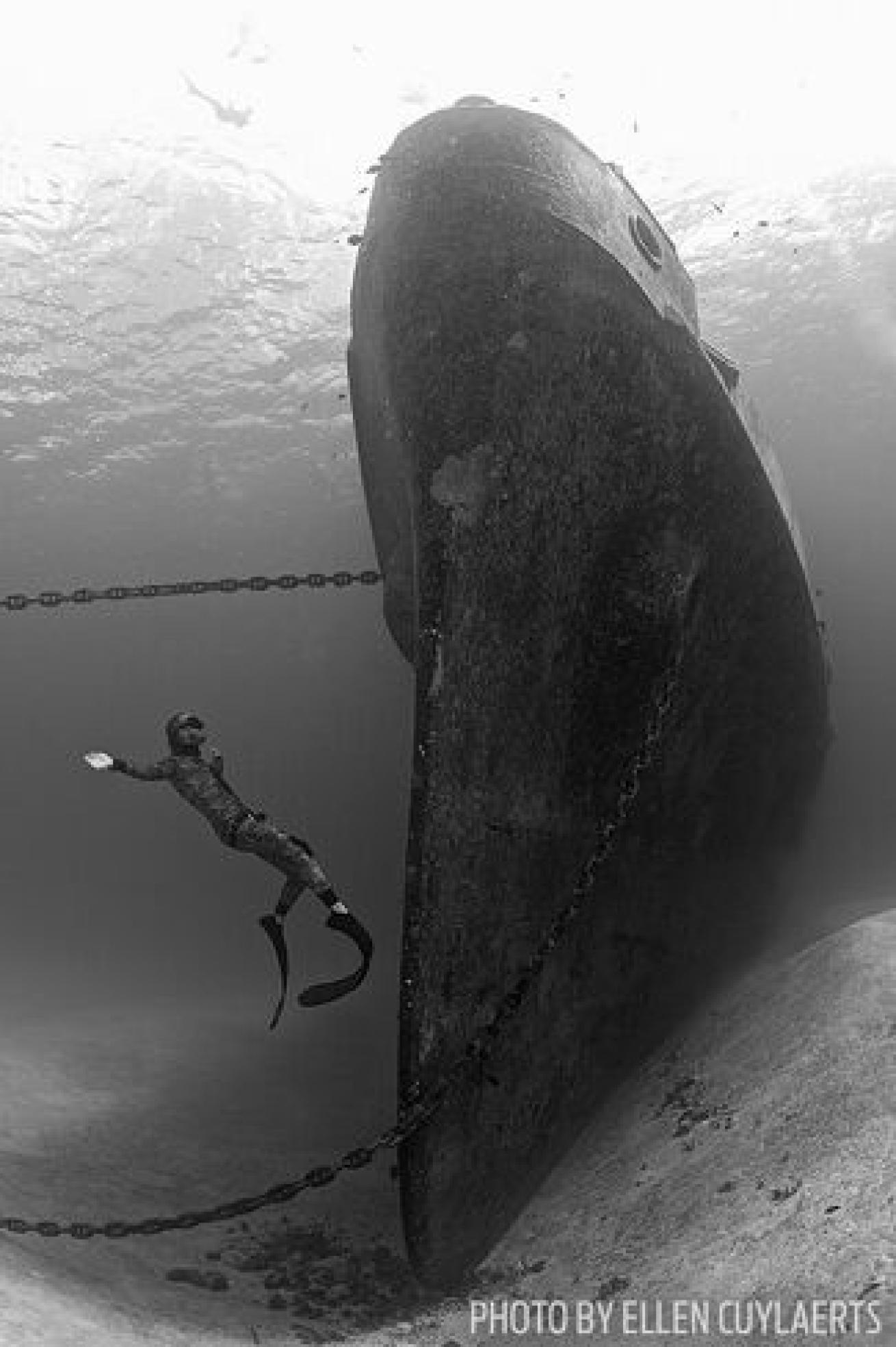 Ellen CuylaertsA freediver explores the Kittiwake shipwreck off Grand Cayman