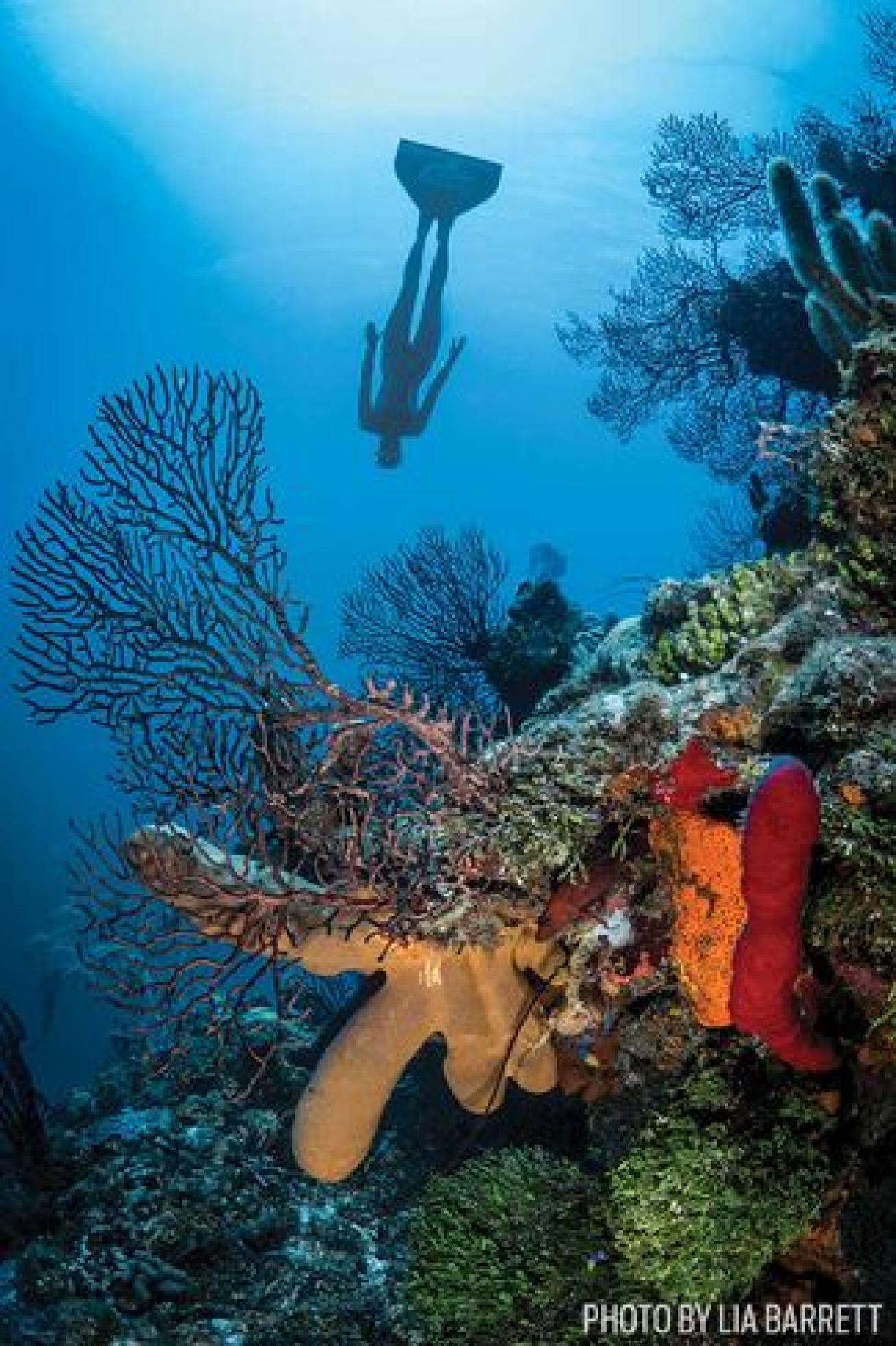 Lia BarrettCompetitive freediver Marianna Krupnitskaya exploring a reef off Roatan